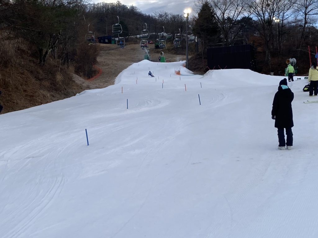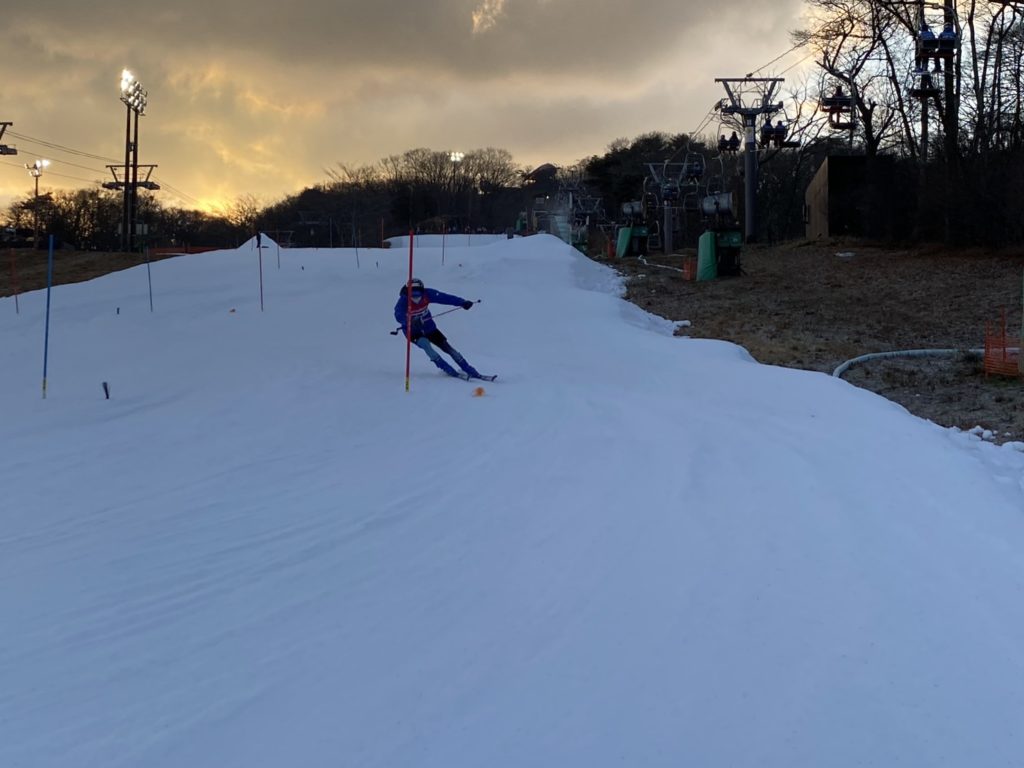 前回に引き続き早朝練習(約2時30分)でゲートトレーニング(SL、GS)を実施。15ターン程度の基本的な練習を16本~18本くらい滑りました。